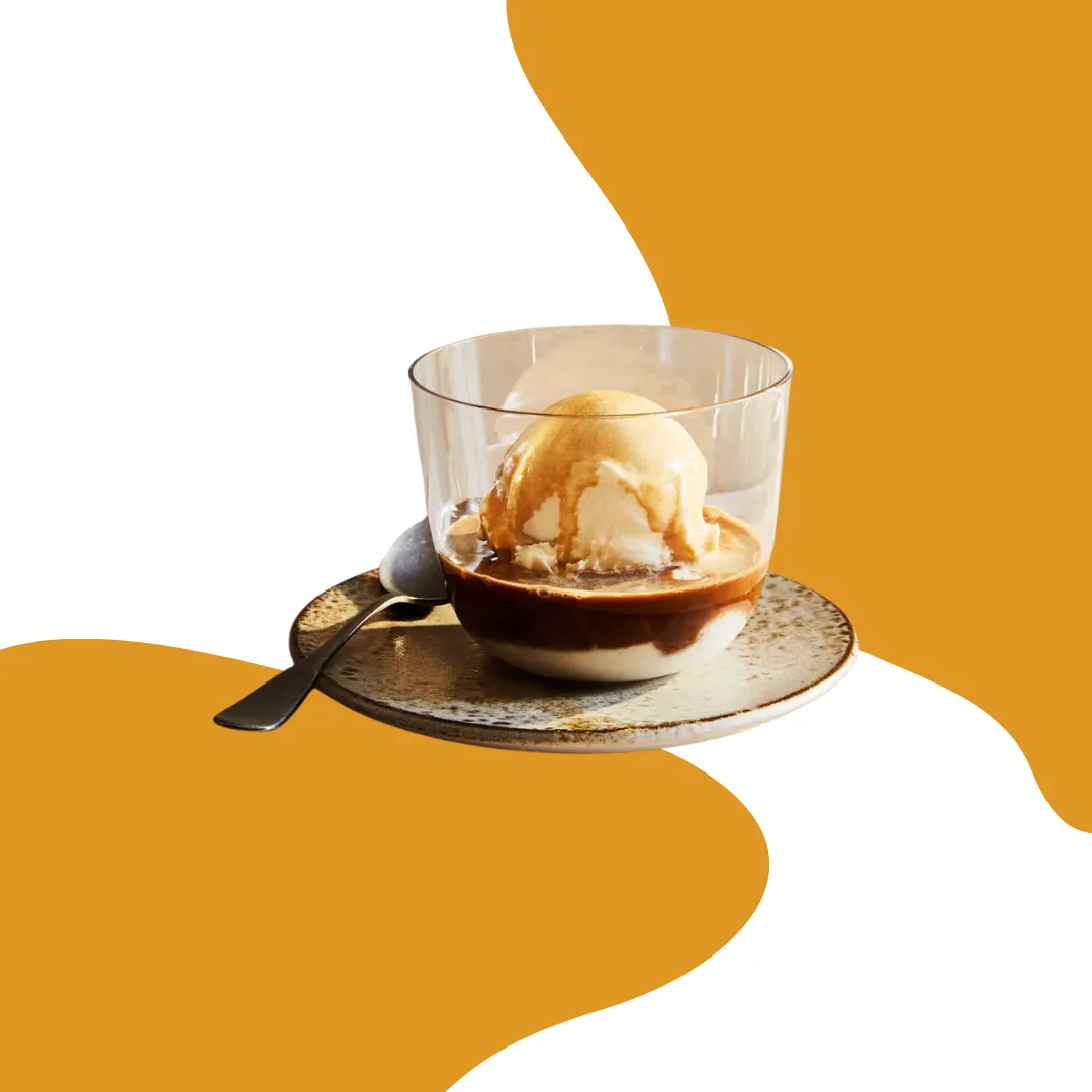 Vanilla ice cream drowned in a hot shot of espresso